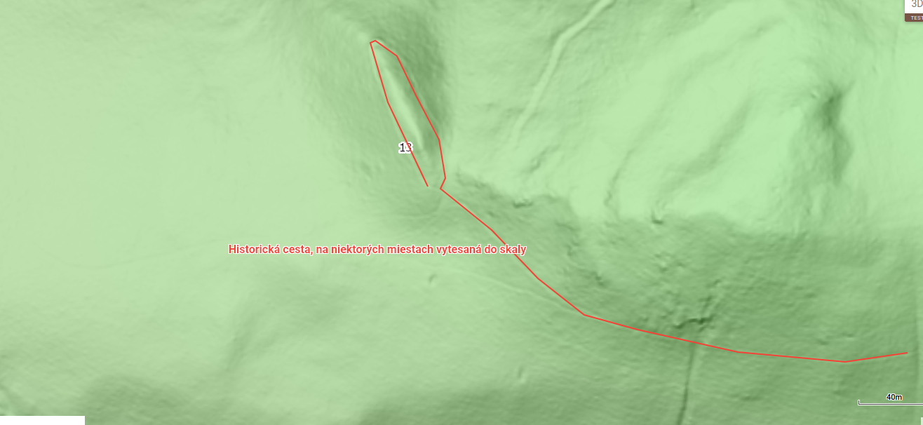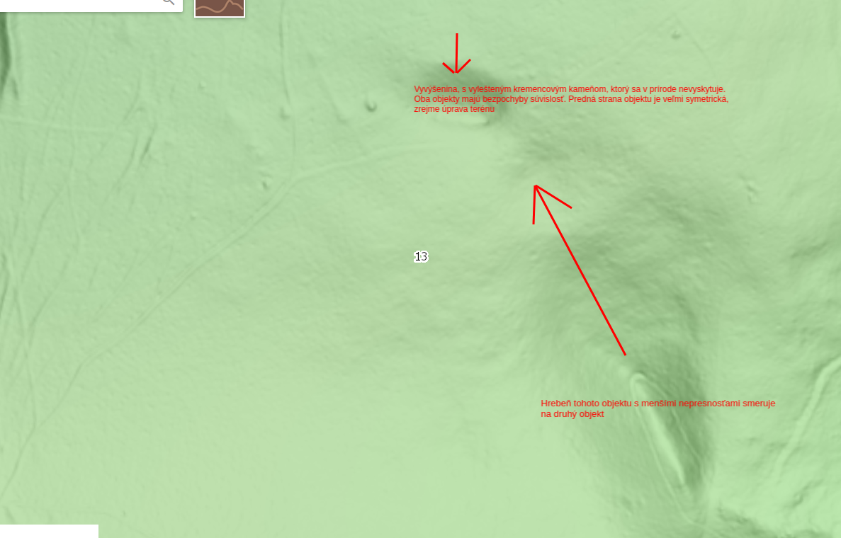 A – the highest part of the emitter as an archaeological object. It is an anthropogenically modified object. It is a ridge-like, 100-meter-long, perfectly symmetrical hillock that has exactly the same height throughout its entire length. In a very simplified way, the hillock resembles the shape of a triangular prism. The composition of this section is quartzite stones.