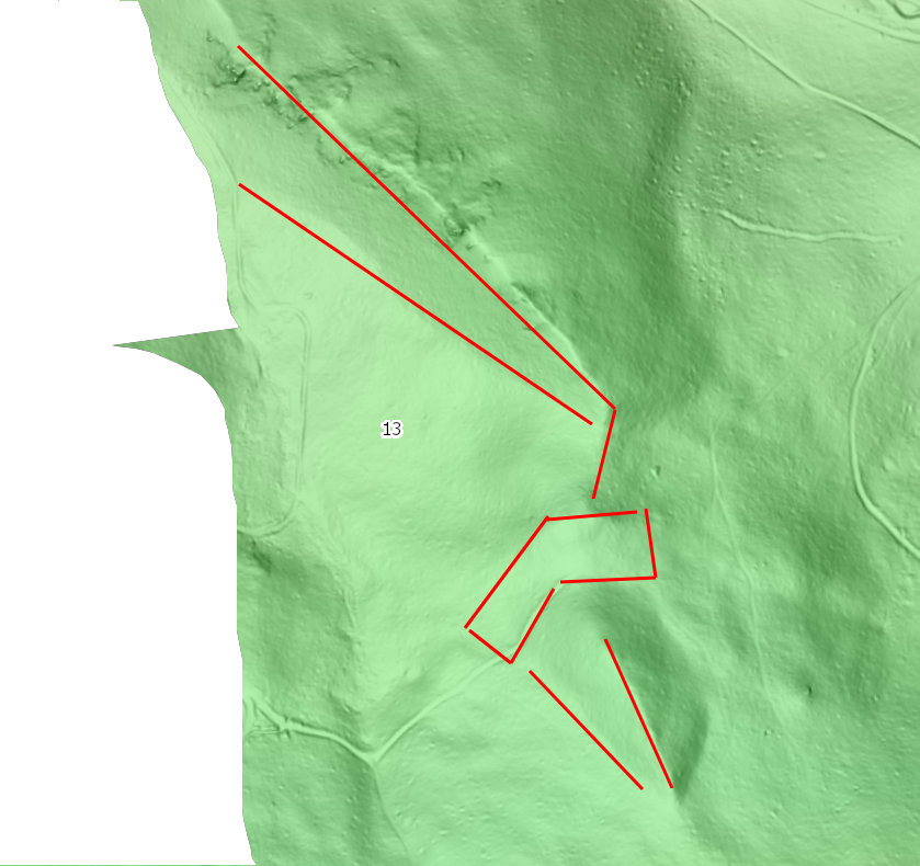 A makeshift representation of how the object should look on a map. (According to the contour lines, one can estimate how the object looks from a 3D perspective).