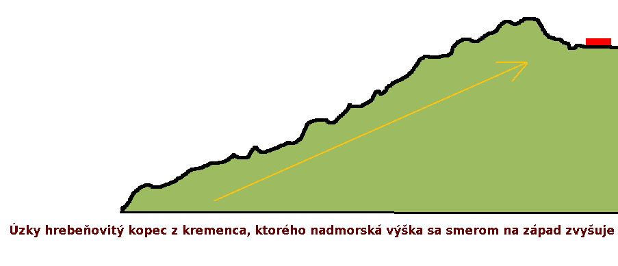 The terrain shown in the image has a length of 750 m. It is a narrow, straight, ridge-like hill made of quartzites.