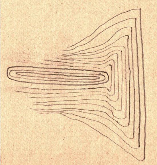 A makeshift representation of how the object should look on a map. (According to the contour lines, one can estimate how the object looks from a 3D perspective).