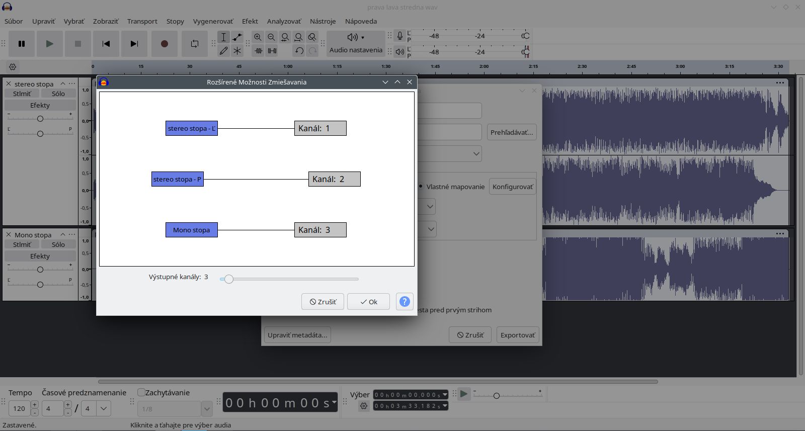 Audacity three-channel audio file