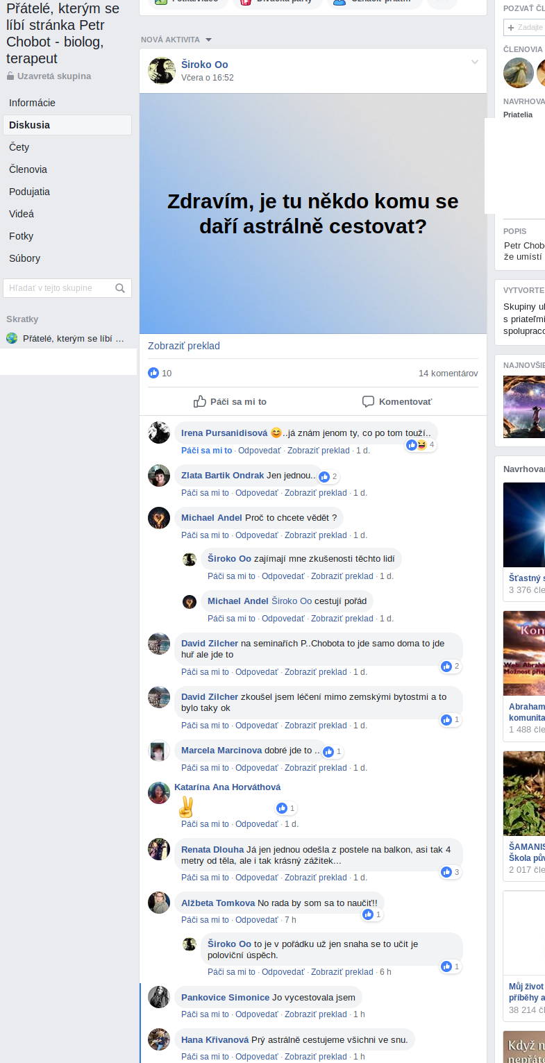 Ak zoberiem do úvahy škandál Petra Chobota, tak si čoraz viac uvedomujem, že Slovensko a Česko zúfalo potrebujú čo najväčší počet ľudí so schopnosťou astrálneho cestovania. Je to dôležité pre správny celkový a duchovný vývoj našich krajín. Potrebujeme aj správnych inštruktorov ktorí budú schopní tejto schopnosti ľudí naozaj naučiť. Je smutné že takéhoto človeka nemá SR ani ČR ani jedného.