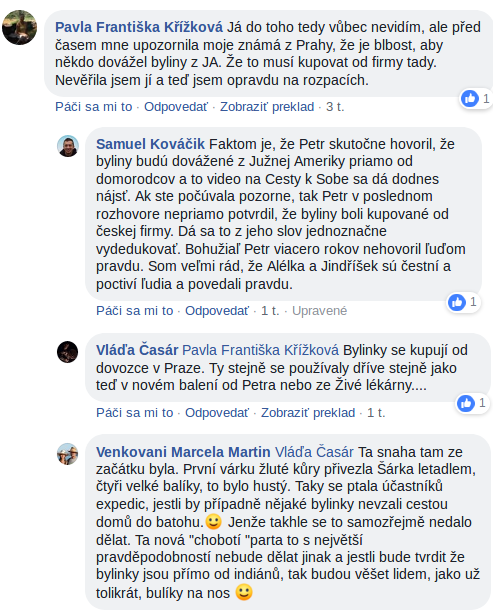 Pak jsme se ale dozvěděli, že nás Petr chce o vše připravit za našimi zády a začal nám vyhrožovat a nadávat. Je přesvědčen, že vše je jeho zásluhou. Přesto, že jsme se s ním snažili udržet jakoukoli formu spolupráce, se rozhodl nás ničit a udělat z nás nepřátele, kteří mu ubližují. Přitom Petr neví ani složení a poměry bylin ve směsích.