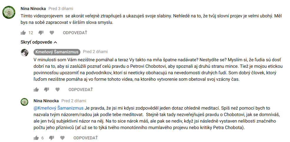 Vyjadrím sa však hlavne k mojim kritikom. V tomto článku by som rád zverejnil spätnú väzbu na veľmi drsné útoky, ktorým som musel čeliť po zverejnení kritického videa o Petrovi Chobotovi.